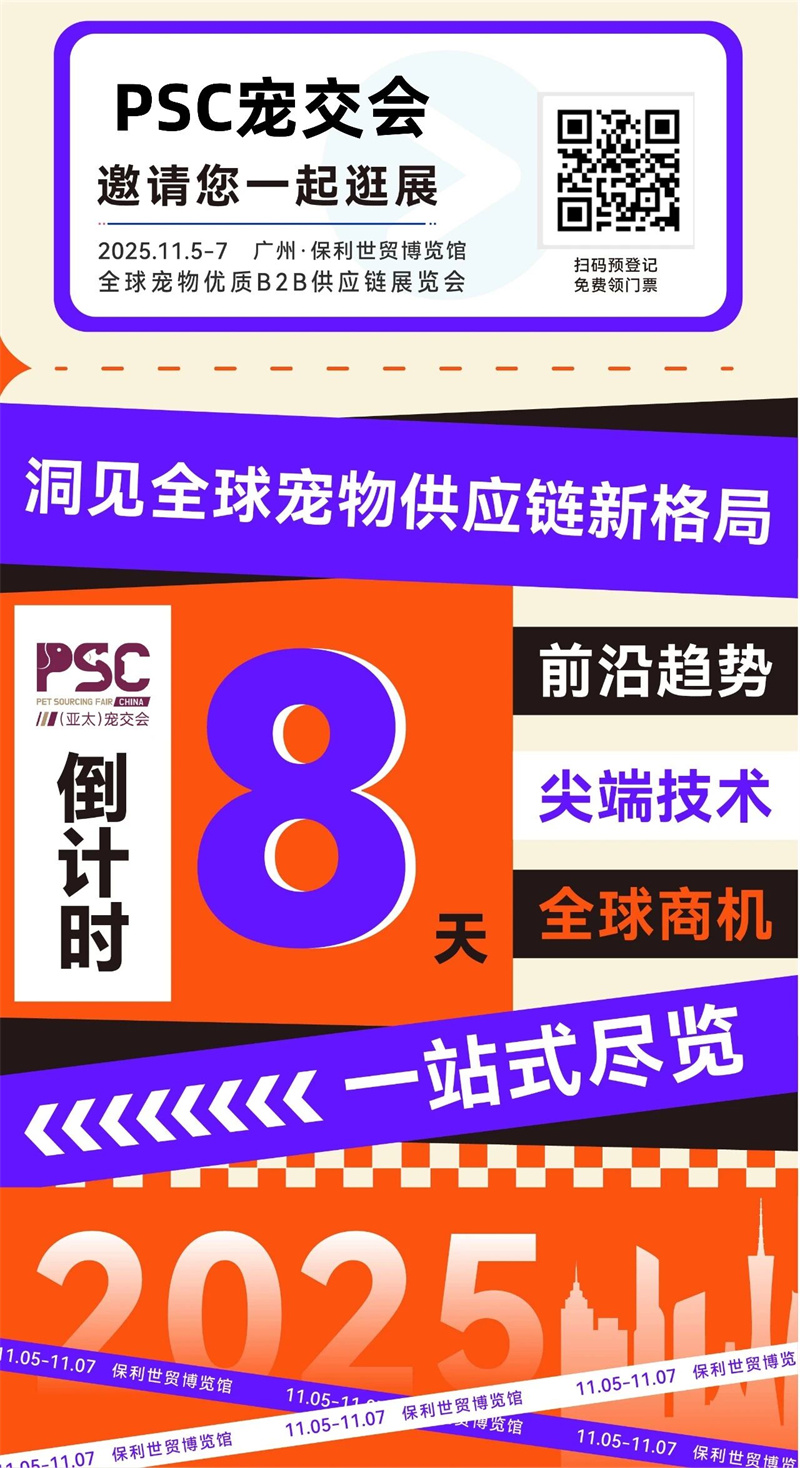 ¡Solo quedan 8 días para la 2.ª Feria de mascotas de PSC, que se celebrará del 5 al 7 de noviembre de 2025 en el Guangzhou Poly World Trade Center Expo!
