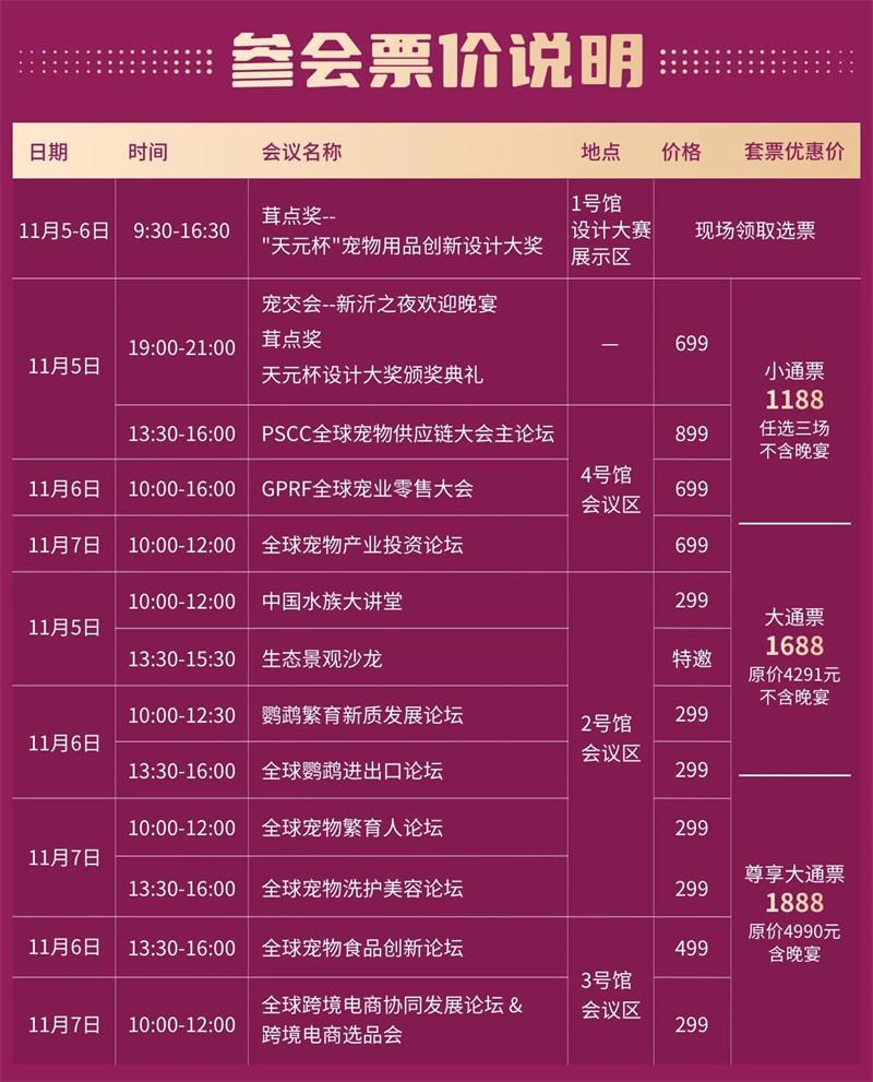 Concursos innovadores y exhibiciones de nuevos productos:El Premio de Diseño a la Innovación en Suministros para Mascotas "Copa Tianyuan", del 5 al 6 de noviembre, de 9:00 a 16:30, se llevará a cabo en el área de exhibición del Concurso de Diseño del Pabellón 1, y se centrará en la protección del medio ambiente y el diseño inteligente; el Área de Exposición de Nuevos Productos y Productos de Lujo estará abierta del 5 al 7 de noviembre en el Área de Exhibición de Nuevos Productos del Pabellón 1, atrayendo al 92% de compradores profesionales como su primera parada, mostrando productos de vanguardia de todo el mundo;